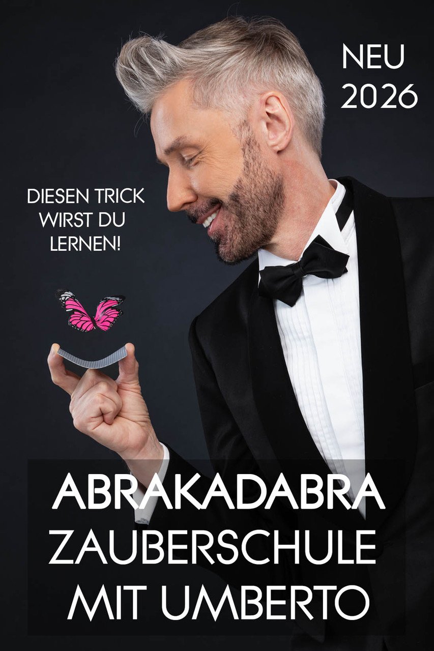 Du hast die einmalige Gelegenheit, mit dem Profizauberer UMBERTO Zauberkunststücke einzuüben, und erhältst vier professionelle Zauberrequisiten, die du nach dem Kurs mit nach Hause nehmen kannst.